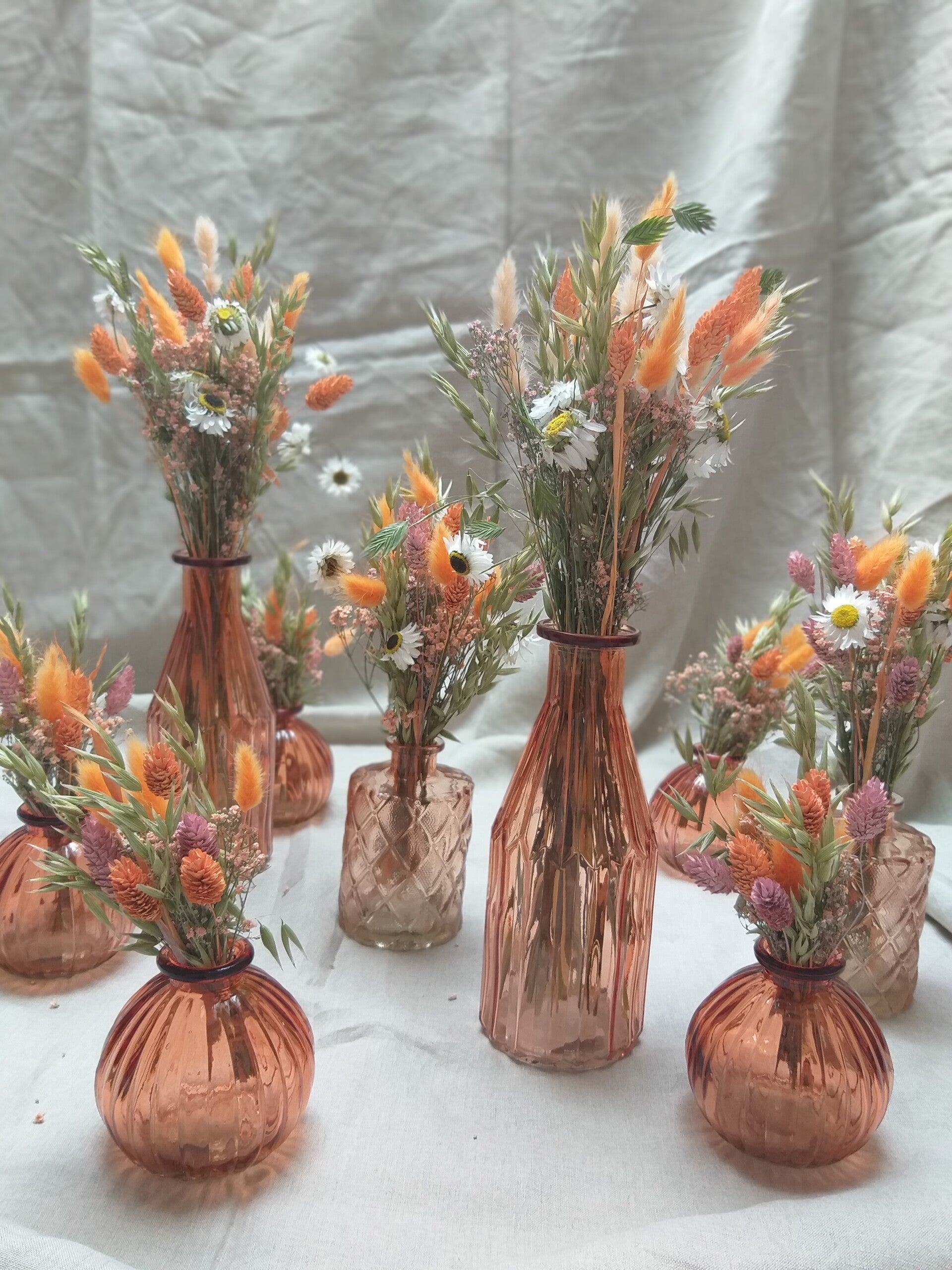 vaasje in peche met zomerse bloemetjes